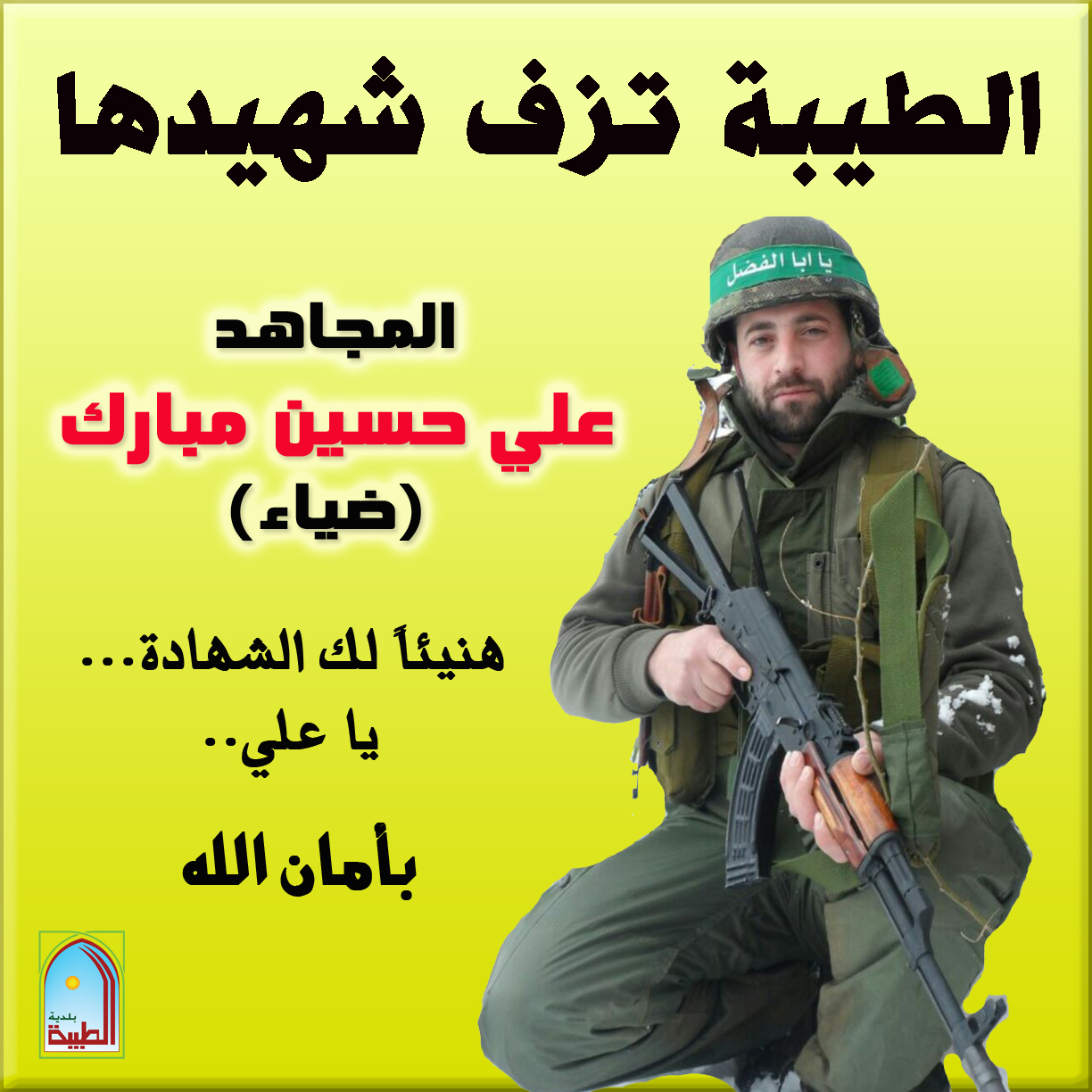 بمزيد من الفخر والإعتزاز تزف المقاومة الإسلامية لشعبها المقاوم إرتحال شهيد زينبي من بلدة الشهداء الطيبة الذي قضى دفاعاً عن العقيدة والمقدسات